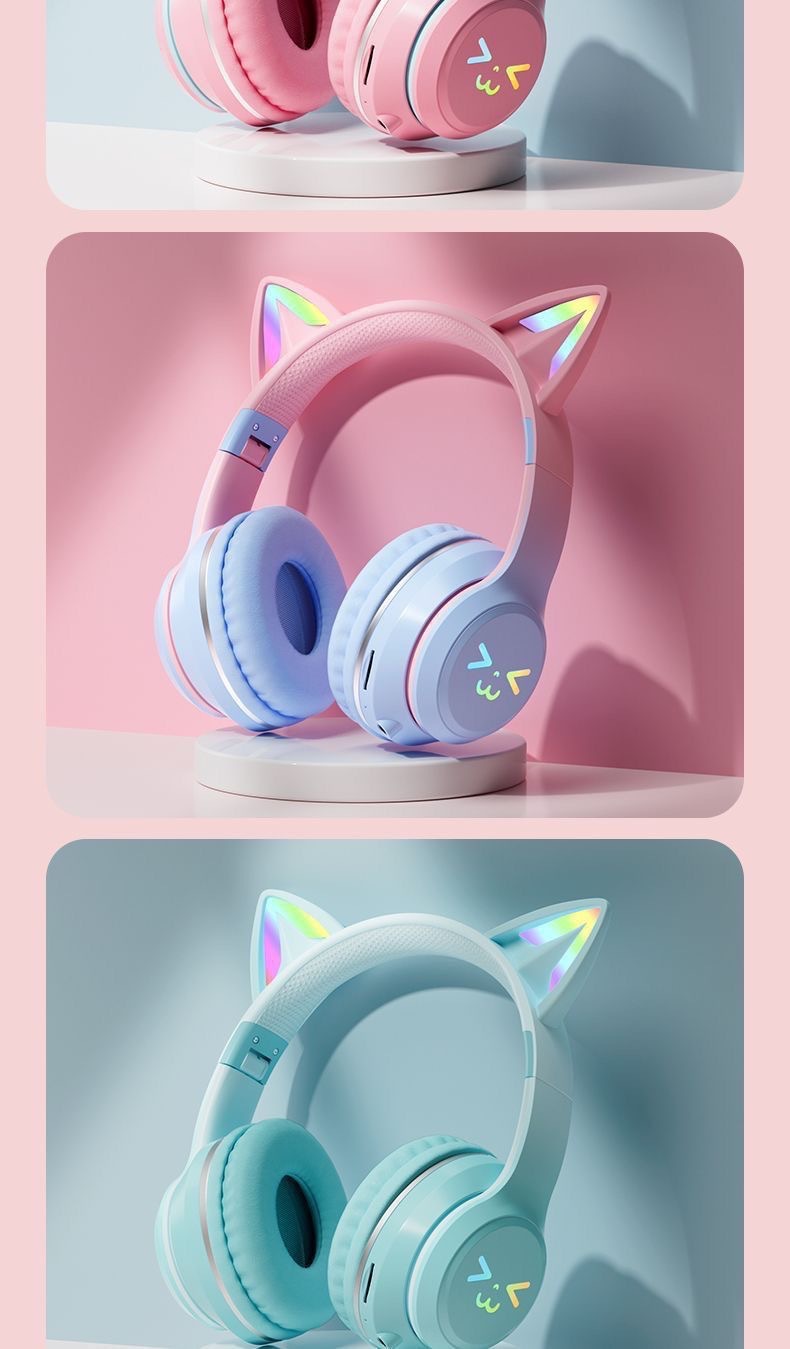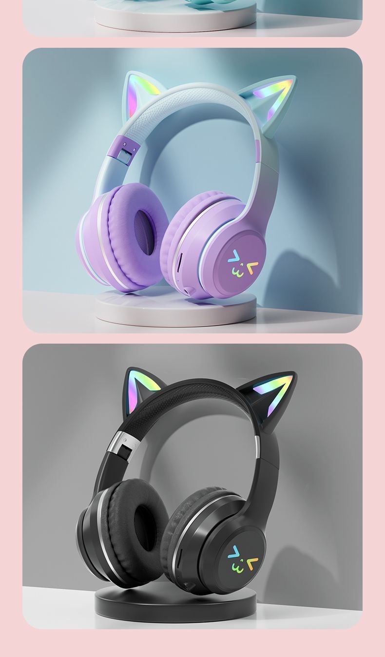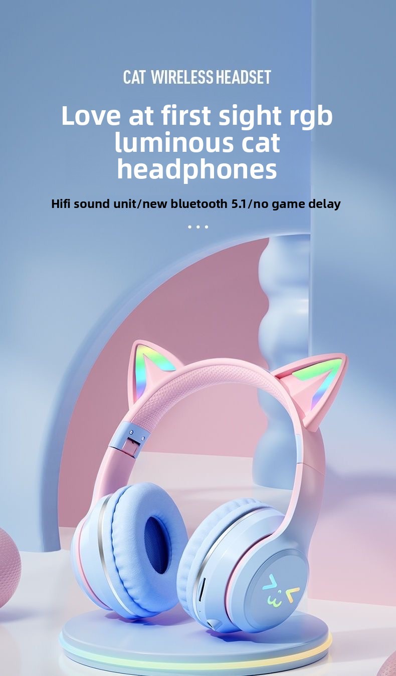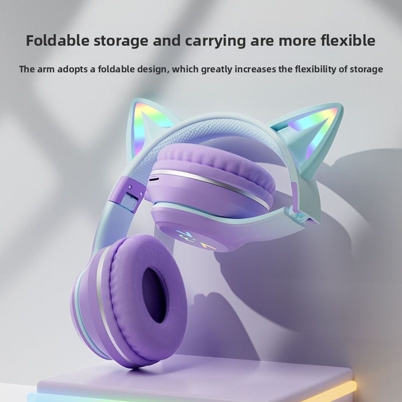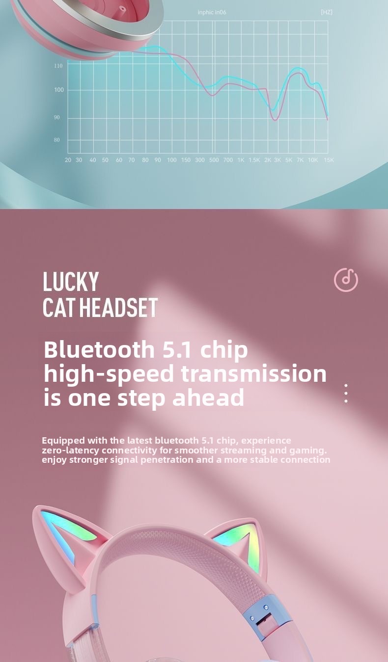 Experience gaming like never before with this Bluetooth Gaming Headset, where cutting-edge tech meets eye-catching style. Featuring mesmerizing gradient cat ears with dynamic lighting effects, this headset turns heads while delivering serious performance. Bluetooth 5.3 keeps your connection rock-solid with minimal power drain, while esports-grade low latency ensures every sound hits exactly when it should. Rock up to 8 hours of non-stop gameplay, music, and calls on a single charge. Built tough with life-waterproof construction and bilateral stereo sound that immerses you completely. Available in five stunning gradient colorways—blue, pink, purple, green, and black—because gaming gear should be as unique as your playstyle.